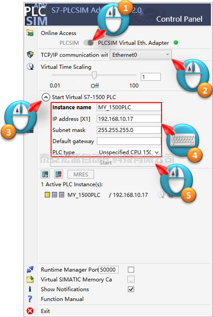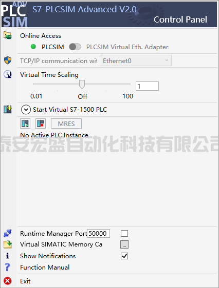 13. 再次右鍵單擊PLCSIM Advanced,可以看到虛擬PLC已經(jīng)啟動(dòng):