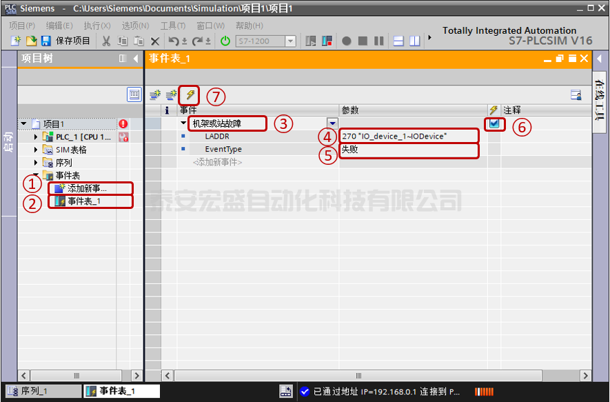 PLCSIM V16增加新功能,事件激活測(cè)試??梢酝ㄟ^(guò)模擬一個(gè)事件,測(cè)試程序中的診斷功能是否生效。如圖12所示,以機(jī)架故障為例。