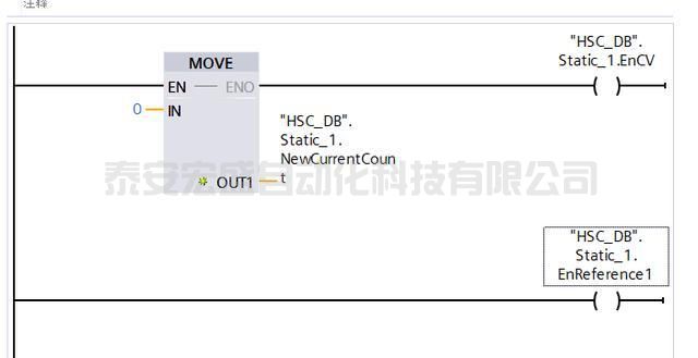 10.再返回OB1程序塊,將中斷程序塊中的高速計(jì)數(shù)器指令復(fù)制到OB1即可,如下圖所示。