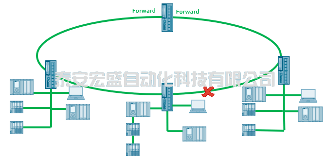 隨著九十年代工業(yè)現(xiàn)場(chǎng)總線(xiàn)技術(shù)的快速興起,通過(guò)通信連接大大的簡(jiǎn)化了機(jī)器設(shè)備的接線(xiàn)工作。早期階段的工業(yè)設(shè)備通常組成線(xiàn)性拓?fù)?,所有的狀態(tài)、控制和診斷數(shù)據(jù)沿著一根電纜進(jìn)行傳送,網(wǎng)絡(luò)的設(shè)計(jì)和連接相對(duì)比較簡(jiǎn)單。而隨著技術(shù)不斷發(fā)展,如今 PLC 控制器已經(jīng)全面支持工業(yè)以太網(wǎng),并且越來(lái)越多的工業(yè)網(wǎng)絡(luò)設(shè)備的加入進(jìn)來(lái),網(wǎng)絡(luò)變得愈發(fā)復(fù)雜。在工業(yè)現(xiàn)場(chǎng),如果采用線(xiàn)性拓?fù)渚W(wǎng)絡(luò)的某個(gè)節(jié)點(diǎn)發(fā)生了問(wèn)題,隨后的設(shè)備就會(huì)完全的斷開(kāi),造成通信的中斷。而針對(duì)工業(yè)技術(shù)對(duì)控制網(wǎng)絡(luò)可靠性的高要求, 工業(yè)以太網(wǎng)的環(huán)網(wǎng)技術(shù)應(yīng)運(yùn)而生。