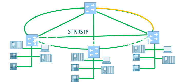 其實(shí)我們只要了解工業(yè)網(wǎng)絡(luò)的特點(diǎn)就可以得出結(jié)論,工業(yè)網(wǎng)絡(luò)對(duì)于實(shí)時(shí)性、可靠性要求高,一旦發(fā)生了環(huán)網(wǎng)的故障,要求盡快的通過(guò)備用路徑恢復(fù)通訊,這樣才會(huì)對(duì)生產(chǎn)的影響降到最低。