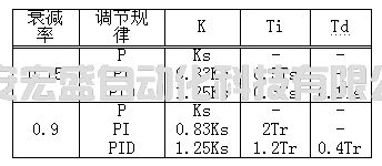 另一種方法是先從表列范圍內(nèi)取Ti的某個數(shù)值,如果需要微分,則取Td=(1/3~1/4)Ti,然后對δ進(jìn)行試湊,也能較快地達(dá)到要求。實踐證明,在一定范圍內(nèi)適當(dāng)?shù)亟M合δ和Ti的數(shù)值,可以得到同樣衰減比的曲線,就是說,δ的減少,可以用增加Ti的辦法來補償,而基本上不影響調(diào)節(jié)過程的質(zhì)量。所以,這種情況,先確定Ti、Td再確定δ的順序也是可以的。而且可能更快些。如果曲線仍然不理想,可用Ti、Td再加以適當(dāng)調(diào)整。