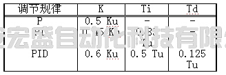 (4)系統(tǒng)出現(xiàn)持續(xù)等幅振蕩時,此時的增益為臨界增益(Ku),振蕩周期(波峰間的時間)為臨界周期(Tu)。