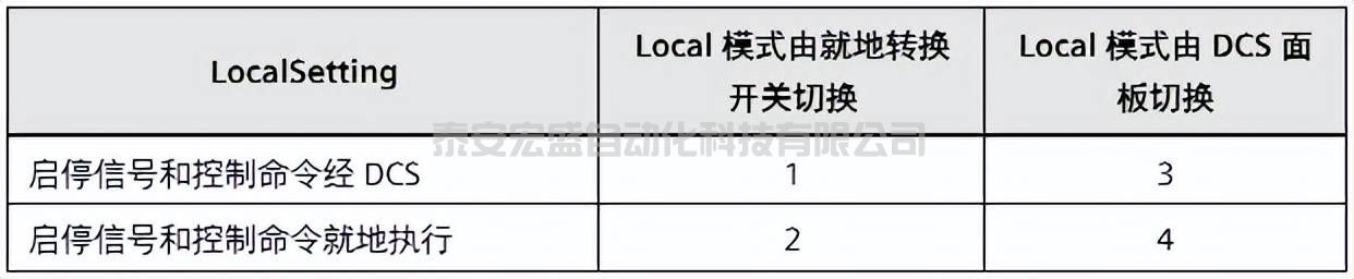 談到電機(jī)肯定會(huì)涉及到模式切換:就地、遠(yuǎn)程。遠(yuǎn)程/就地模式的切換及就地啟動(dòng)方式,各現(xiàn)場因?qū)嶋H電氣控制回路設(shè)計(jì)不同,需求也可能不盡相同。例如有的現(xiàn)場遠(yuǎn)程/就地切換通過現(xiàn)場轉(zhuǎn)換開關(guān)實(shí)現(xiàn),就地啟停不經(jīng)過PLC,而別的現(xiàn)場同樣切換方式下可能就地啟停命令經(jīng)PLC發(fā)出。還有的現(xiàn)場遠(yuǎn)程/就地模式切換在DCS側(cè)面板中實(shí)現(xiàn),現(xiàn)場沒有轉(zhuǎn)換開關(guān)。MotL充分考慮了這種需求,通過LocalSetting設(shè)置為不同的值可以滿足不同的應(yīng)用場合。如下表所示: