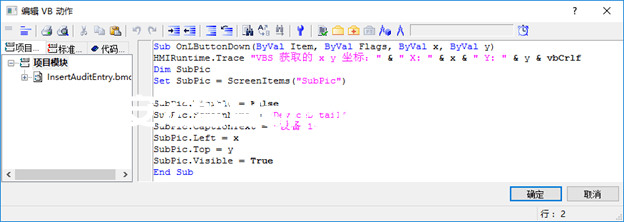 HMIRuntime.Trace "VBS 獲取的 x y 坐標:" & " X: " & x & " Y: " & y & vbCrlf