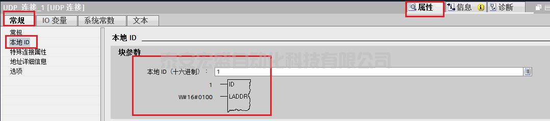 ④連接的常規(guī)-屬性內,設置新建連接的本地ID和伙伴IP及端口,如圖8-9所示。