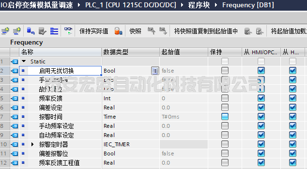 控制變頻器時(shí),有很多種方式,比如通信、模擬量、開關(guān)量等方式。而在現(xiàn)場PLC控制變頻器時(shí),可能會有手自動切換、頻率給定、頻率反饋、無擾動切換等功能需求。那么我們就可以利用S7-1200PLC的FB塊的功能,把上述功能進(jìn)行封裝。