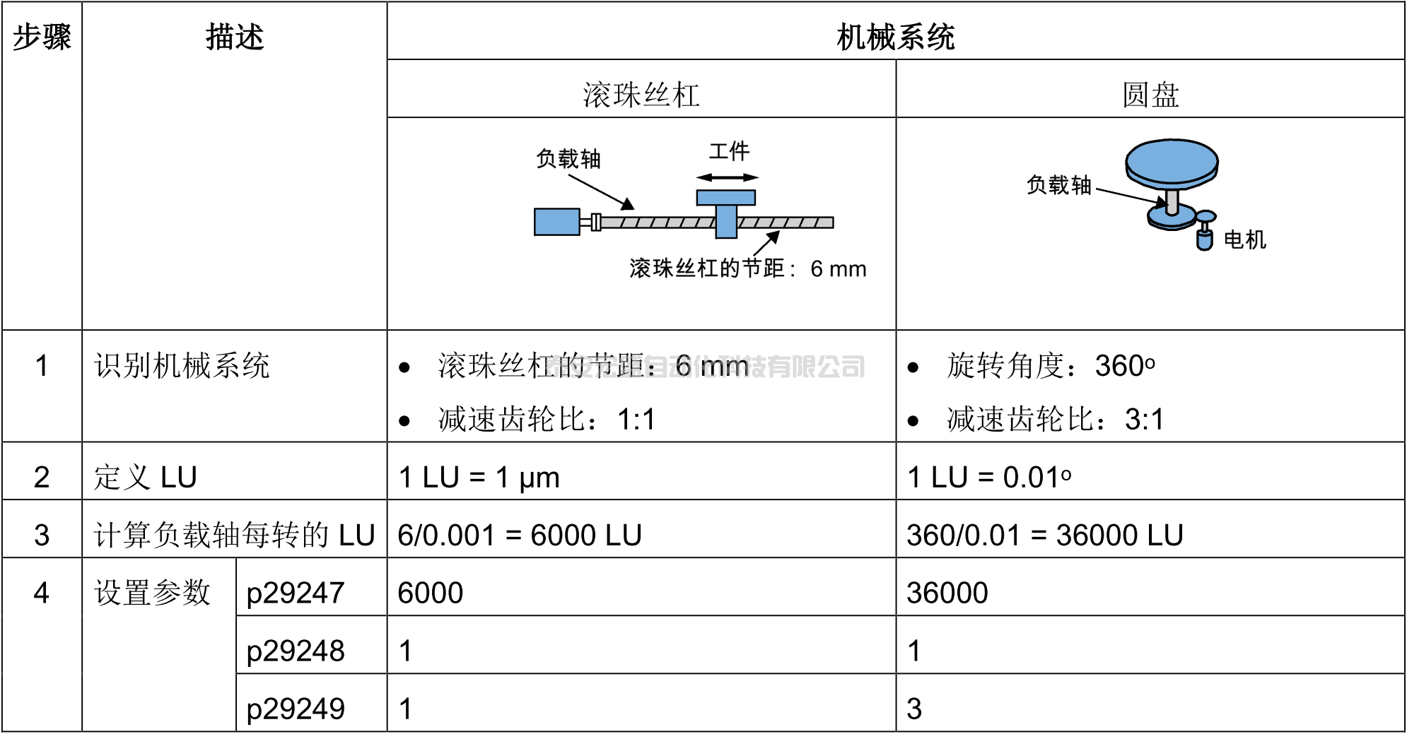 P29247為負載每轉的LU值,其可以自己定義。目的是讓負載每轉的位移單位與EPOS中的LU建立關系,例如:負載每轉10mm,P29247設置為10000LU,也就是10mm=10000LU,那么設定1LU,負載會位移0.001mm(=1um)