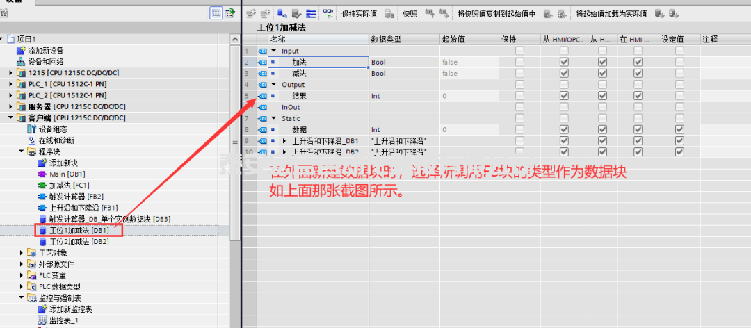 多重實(shí)例:比如,在FB塊中調(diào)用定時(shí)器時(shí),選擇了多重實(shí)例,那么改定時(shí)器的背景數(shù)據(jù)塊就保存在了當(dāng)前FB塊的Static中了。這樣就減少了外部DB塊的生成。