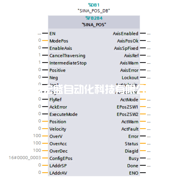 4.在OB1中調(diào)用SINA_POS(FB284) 實(shí)現(xiàn)S120的基本定位控制。
