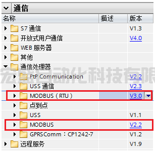 博途V13 SP1版本軟件中提供了2個版本的Modbus RTU指令: