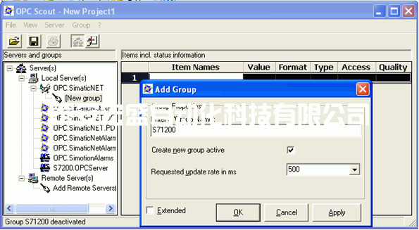 雙擊OPC.SimaticNET,新建一個(gè)組并輸入變量組的名稱(chēng),例如S7-1200 。如圖16所示。