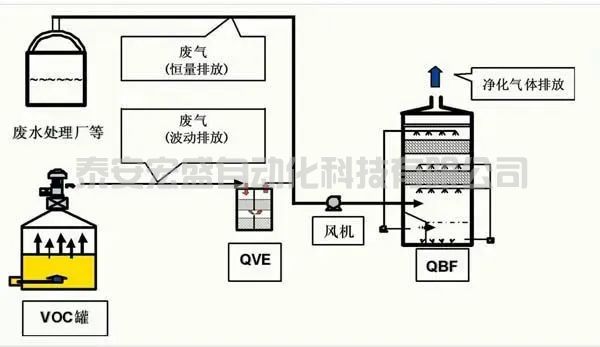 吸收法是指廢氣和洗滌液接觸將VOCs從廢氣中移走,之后再用化學(xué)藥劑將VOCs中和、氧化或由其他化學(xué)反應(yīng)破壞。該方法適合處理高水溶性有機(jī)廢氣VOCs。