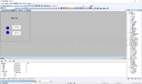 首先新建兩個子畫面(電機,風機)內(nèi)容包括一個小標題,兩個按鈕,兩個狀態(tài)顯示。