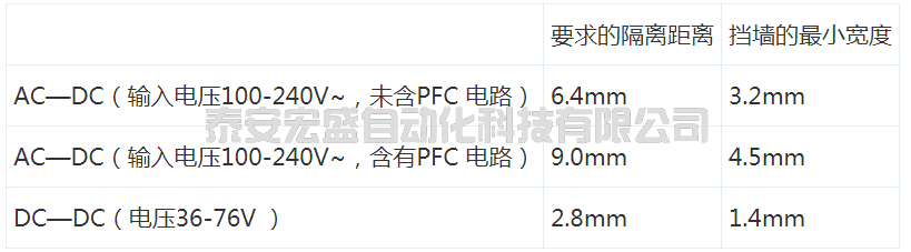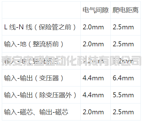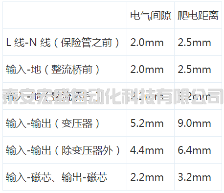 (1)一次側交流部分:保險絲前L—N≥2.5mm,L.N 大地≥2.5mm,保險絲之后可不做要求,但盡量保持一定距離以避免短路損壞電源。