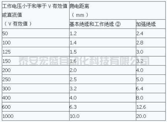 表二爬電距離(適用于基本絕緣、工作絕緣② 、加強絕緣)
