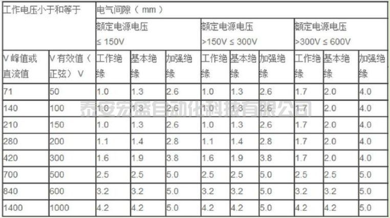 表三電氣間隙(適用于一次電路與二次電路間、一次電路內、輸入電路、輸入電路與其他電路)