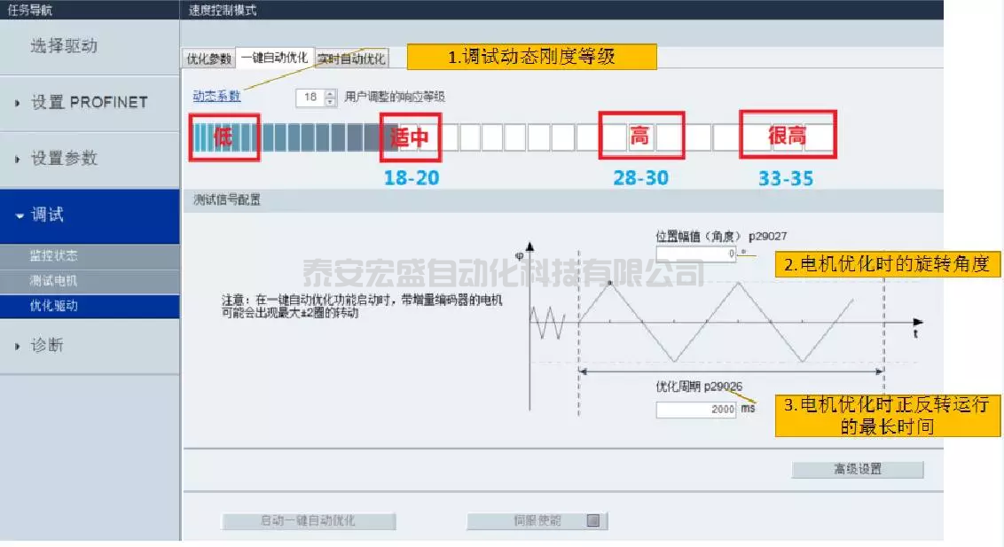 動態(tài)剛度等級:這是優(yōu)化V90伺服電機(jī)的動態(tài)性能參數(shù),數(shù)值越高,電機(jī)的動態(tài)相應(yīng)特性越好。但是,過高的動態(tài)響應(yīng)特性會引起電機(jī)的諧振,導(dǎo)致整個(gè)控制系統(tǒng)不穩(wěn)定,根據(jù)擺動的需求選擇合適的范圍。