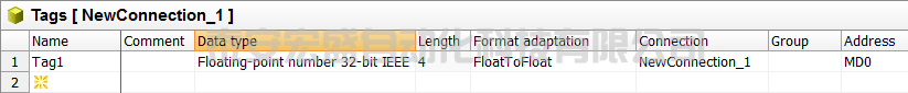 23. 在此連接下創(chuàng)建一個(gè)測(cè)試變量,數(shù)據(jù)類(lèi)型為32位浮點(diǎn)數(shù),地址為MD0: