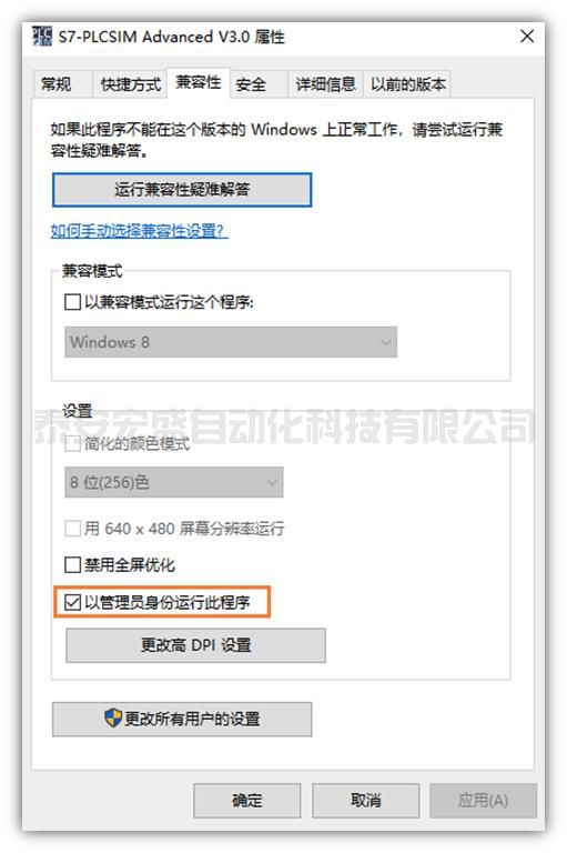 (1)軟件要以管理員權(quán)限運行:可以直接每次右擊,以管理員權(quán)限運行,如果想一勞永逸,可以點擊圖標(biāo),右擊屬性,在兼容性中,將以管理員身份運行此程序的選項勾選。