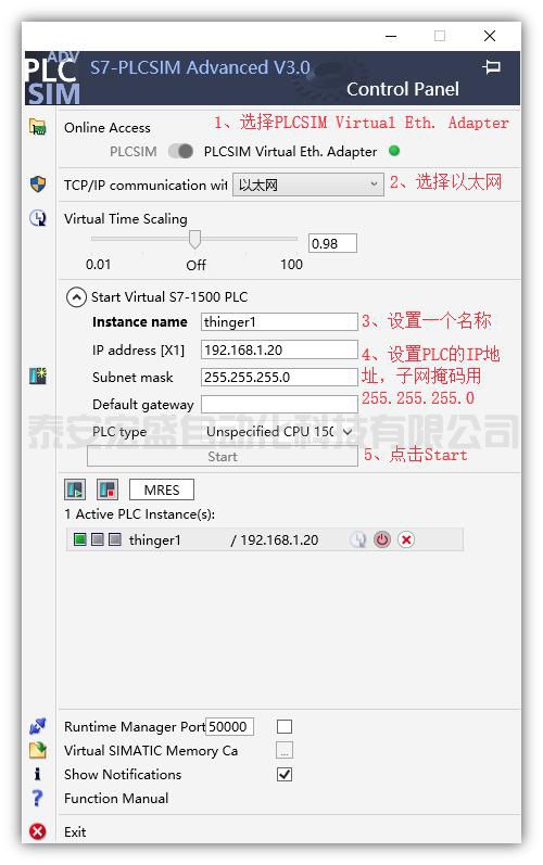 (4)打開PLCSIM-Advanced,依次按照步驟進行設(shè)置: