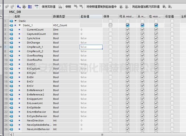 5.將EnHSC變量的值設(shè)置為1,也就是高速計(jì)數(shù)器的軟件門使能,如下圖所示。