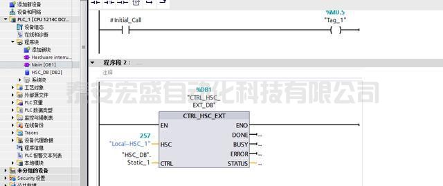 10.再返回OB1程序塊,將中斷程序塊中的高速計(jì)數(shù)器指令復(fù)制到OB1即可,如下圖所示。