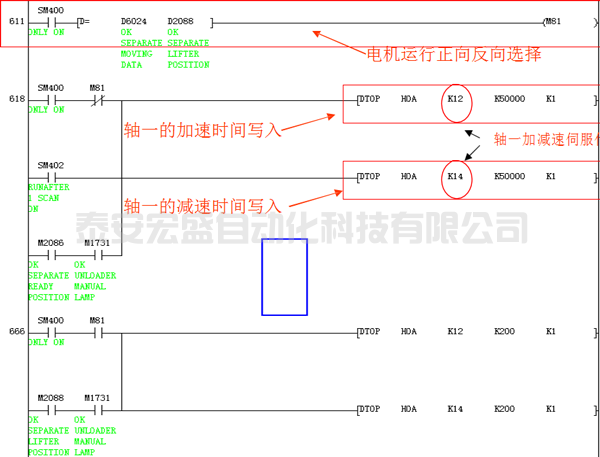 10.伺服電機加速時間和減速時間的程序設(shè)定方法: