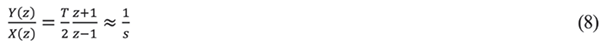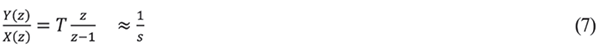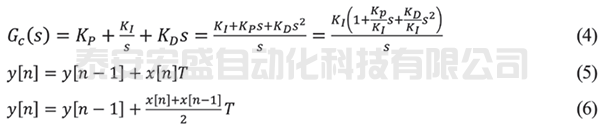 等式 3 不是實現(xiàn)離散 PID 控制器的唯一方法。另一種可能性是將 PID 控制傳遞函數(shù)從其 s 域(等式 4)轉(zhuǎn)換為 z 域。實際上,這種轉(zhuǎn)變有兩種方式。兩者都是從離散時間積分的不同近似推導(dǎo)而來的。最常見的近似離散時間積分是矩形(等式 5)和梯形(等式 6)近似。