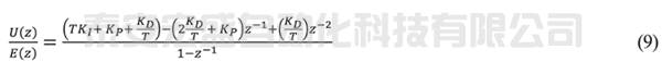等式 7 和 8 對應(yīng)于積分項,其在 s 域中表示為 1/s。因此,如果取等式 7 右側(cè)的倒數(shù)(s),并用其替換等式 4中的每個 s 算子,則會得到 PID 補償?shù)囊韵聜鬟f函數(shù)(在z 域中):
