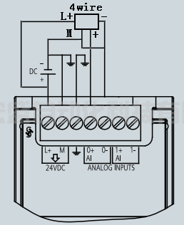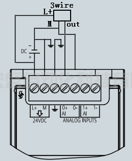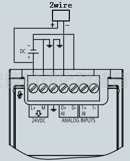 當模擬量模塊的輸入通道設(shè)置為電流信號輸入時,電流信號輸出的傳感器根據(jù)線的根數(shù)不一樣,分為二線制、三線制、四線制的傳感器,它們的接線方法是有區(qū)別的。具體看下面的接線圖。