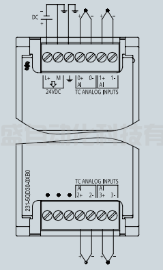 S7-1200 PLC有專用用于對溫度進行采集的熱電偶模塊SM1231 TC和SM 1231RTD。熱電偶模塊有4AI和8AI兩種,下面以SM1231 TC 4AI為例看一下接線圖。
