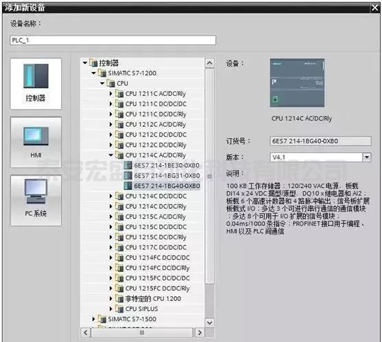 雙擊項(xiàng)目樹中的“添加新設(shè)備”,選中“添加新設(shè)備”對話框中的V4.1版的CPU 1214C AC/DC/Rly, 其PN接口的IP地址為192.168.0.1,子網(wǎng)掩碼為255.255.255.0。單擊“確定”按鈕確認(rèn)。