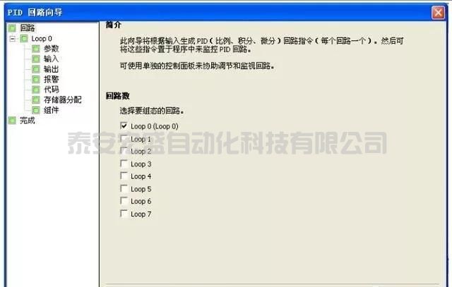 在此對話框中選擇要組態(tài)的回路。最多可組態(tài) 8 個回路。在此對話框上選擇回路時,PID 向?qū)ё髠?cè)的樹視圖隨組態(tài)該回路所需的所有節(jié)點一起更新。