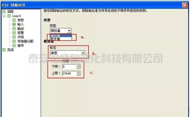 2、選擇模擬量則需設(shè)定回路輸出變量值的范圍,可以選擇: