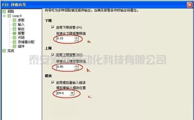 3、使能過程值(PV)模擬量模塊錯誤報警并設(shè)定模塊于CPU連接時所處的模塊位置。“EM0”就是第一個擴展模塊的位置