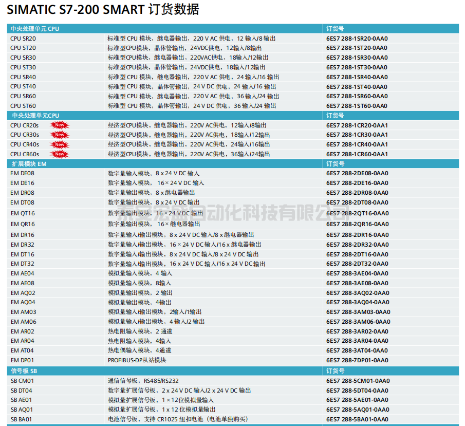 西門子S7-200SMART完整訂貨號(hào)已經(jīng)型號(hào)