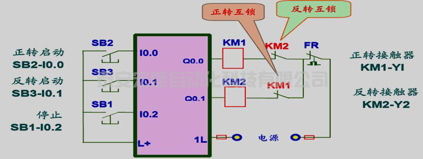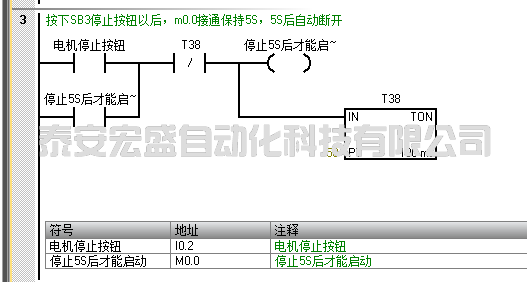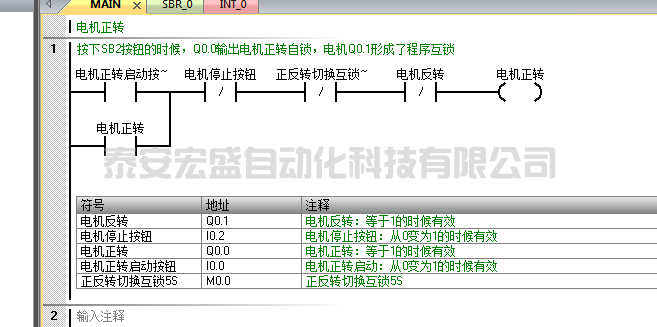 4:如下圖按下SB2的時(shí)候I0.0接通,Q0.0輸出電機(jī)正轉(zhuǎn)自鎖,Q0.1電機(jī)反轉(zhuǎn)形成了互鎖,m0.0是自鎖停止后5S才能啟動(dòng)。
