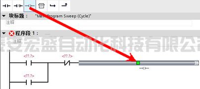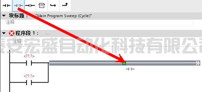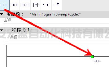 ----3.選中下面的常開觸點(diǎn)右側(cè)的雙箭頭,點(diǎn)擊收藏夾中的向上箭頭,連接能流: