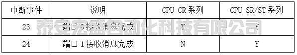 根據(jù)程序分析錯(cuò)誤出現(xiàn)的原因和中斷有關(guān),可以查詢S7-200 SMART系統(tǒng)手冊(cè)中斷章節(jié)可以找到對(duì)應(yīng)答案,如表1所示,24號(hào)中斷事件CR60不支持,所以在運(yùn)行時(shí)會(huì)報(bào)錯(cuò)非致命錯(cuò)誤。