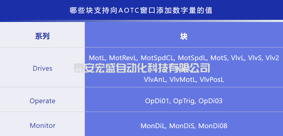 AOTC 不僅局限于添加模擬量,同時對于 APL 中的以下功能塊,也集成了添加數(shù)字量到 AOTC 控件的功能。