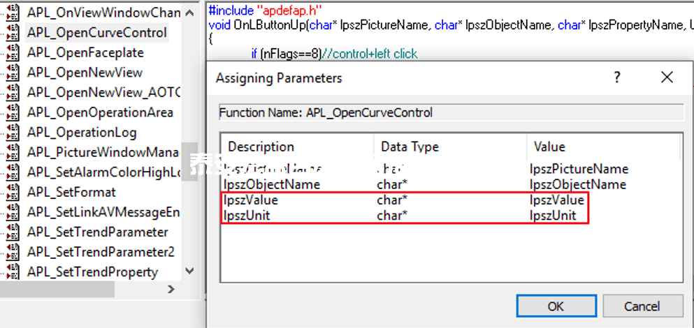 APL_OpenCurveControl 函數(shù)兩個關(guān)鍵參數(shù) lpszValue 和 lpszUnit: