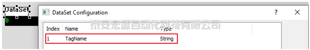 此時仿照 PCS 7 塊圖標(biāo)的格式,用 DataSet 收集 tagname,從 standard 中拖拽 DataSet 到畫面中,并添加 Index 設(shè)置名稱為 TagName,Type 為 String格式。