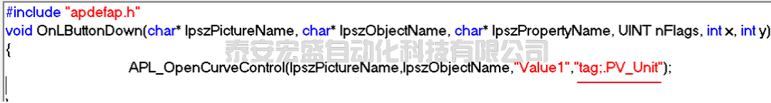 上圖中 Unit 之所以為空,是因為沒有給 APL_OpenCurveControl 函數(shù)的lpszUnit參數(shù)賦值所致,修改腳本如下圖(其中 tag 指 tagname):