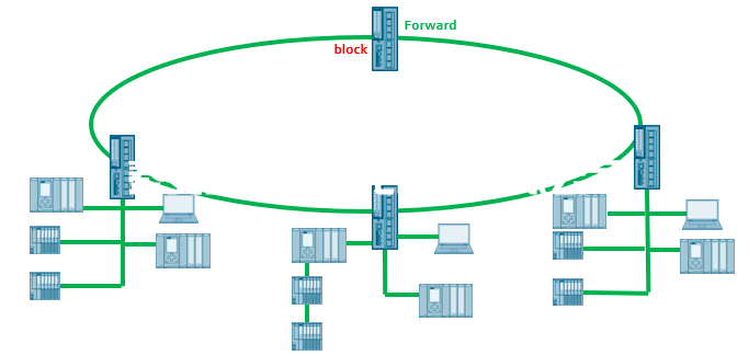 其實(shí)我們只要了解工業(yè)網(wǎng)絡(luò)的特點(diǎn)就可以得出結(jié)論,工業(yè)網(wǎng)絡(luò)對(duì)于實(shí)時(shí)性、可靠性要求高,一旦發(fā)生了環(huán)網(wǎng)的故障,要求盡快的通過(guò)備用路徑恢復(fù)通訊,這樣才會(huì)對(duì)生產(chǎn)的影響降到最低。