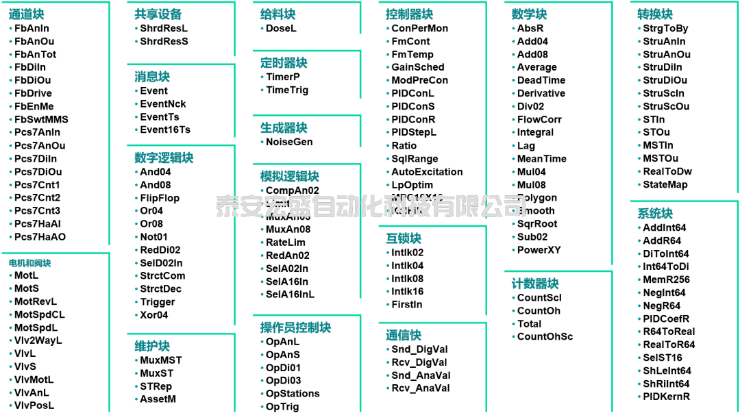 下圖為PCS 7 V9.1 SP1 版本中APL庫提供的所有功能塊,細(xì)分可以達(dá)19個(gè)小類別。