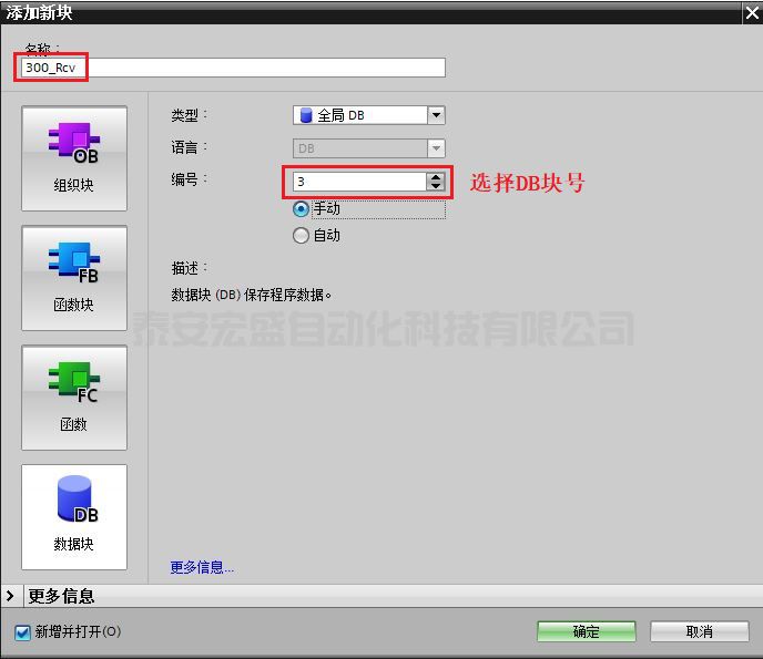 1.2 創(chuàng)建并定義 S7-300 的接收數(shù)據(jù)區(qū) DB 塊。