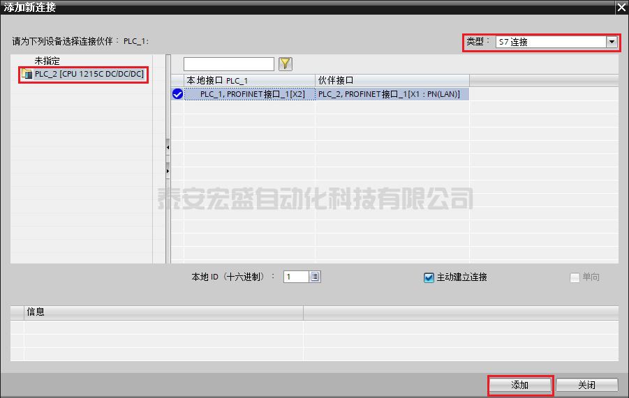 (2) 然后在“添加新連接”窗口中,選擇“PLC_2[CPU1215C DC/DC/DC]”,然后點(diǎn)擊“添加”建立 S7 連接,如圖 8 所示。