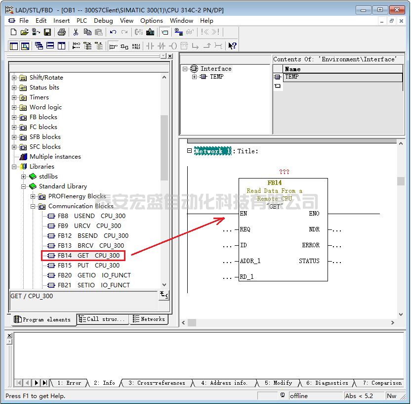 ① S7-300 CPU 讀取 S7-1200 CPU中 DB1 的 10 個字節(jié)數(shù)據(jù)到 S7-300 的 DB3 中。