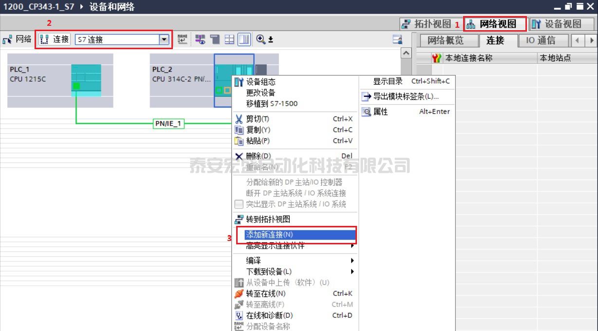 6. 創(chuàng)建 CPU 的邏輯網絡連接(僅當S7-1200 和 S7-300 在同一 TIA 項目)